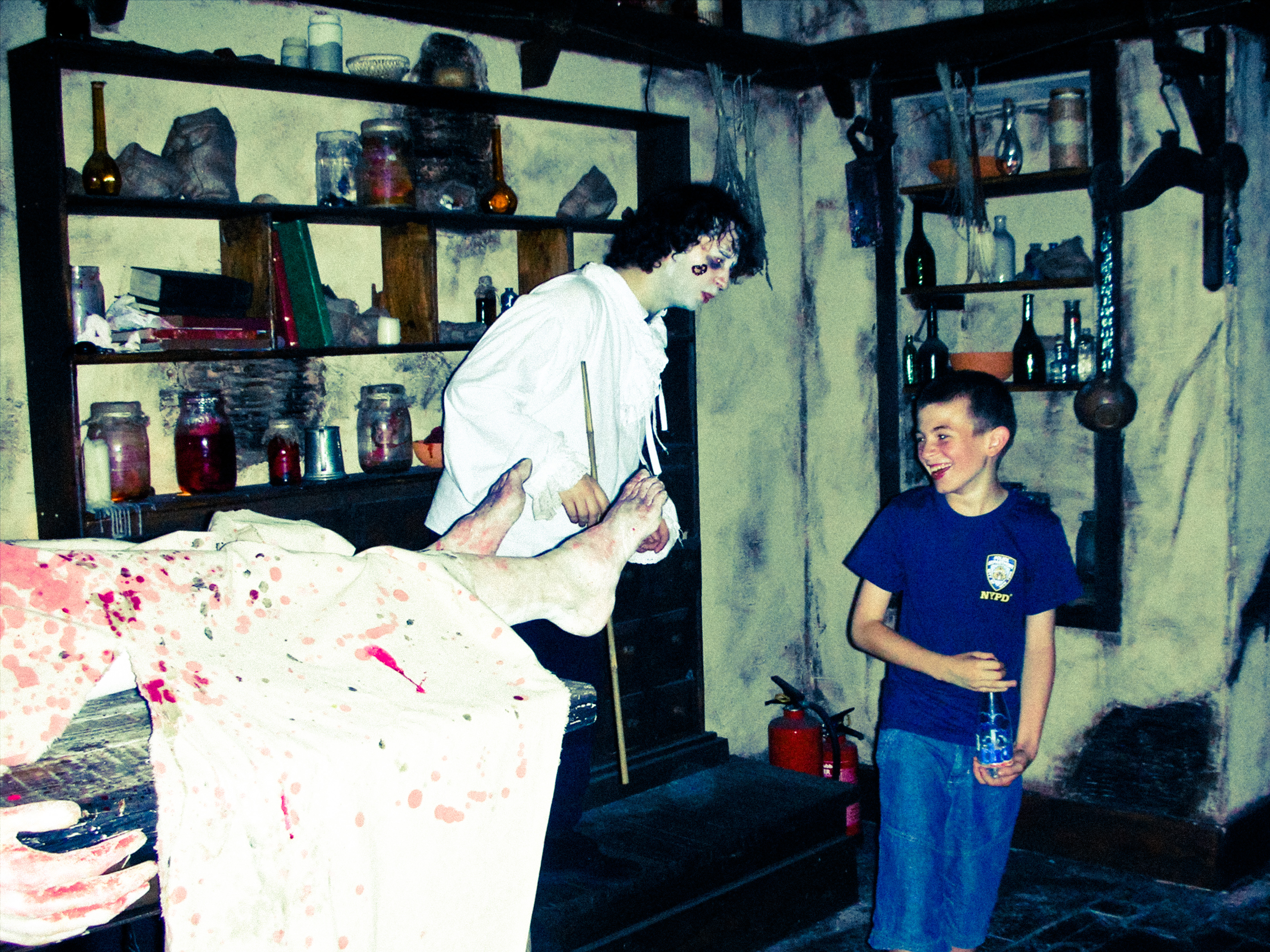 Kids (ours and others) instantly on edge. Darkness, chilly stone corridors, fear lurking in every corner. Growls and groans. Buckets of blood and gore. Staff who delighted in generating terror.