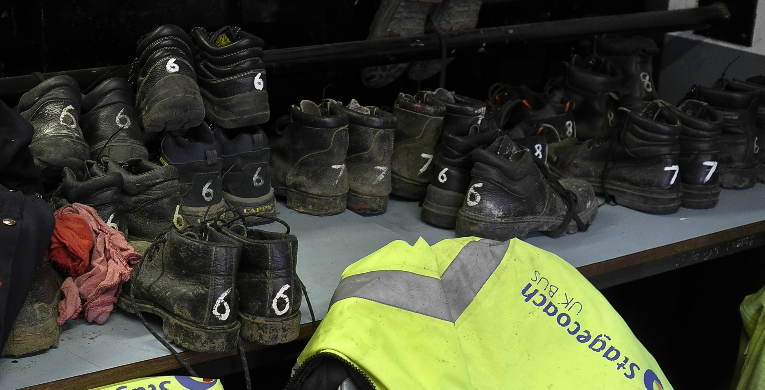 We passed the rows of work boots, painted with shoe size, the neon jackets, the lockers. And saw his engine. Still on the trolley as he’d left it. That Wednesday afternoon.