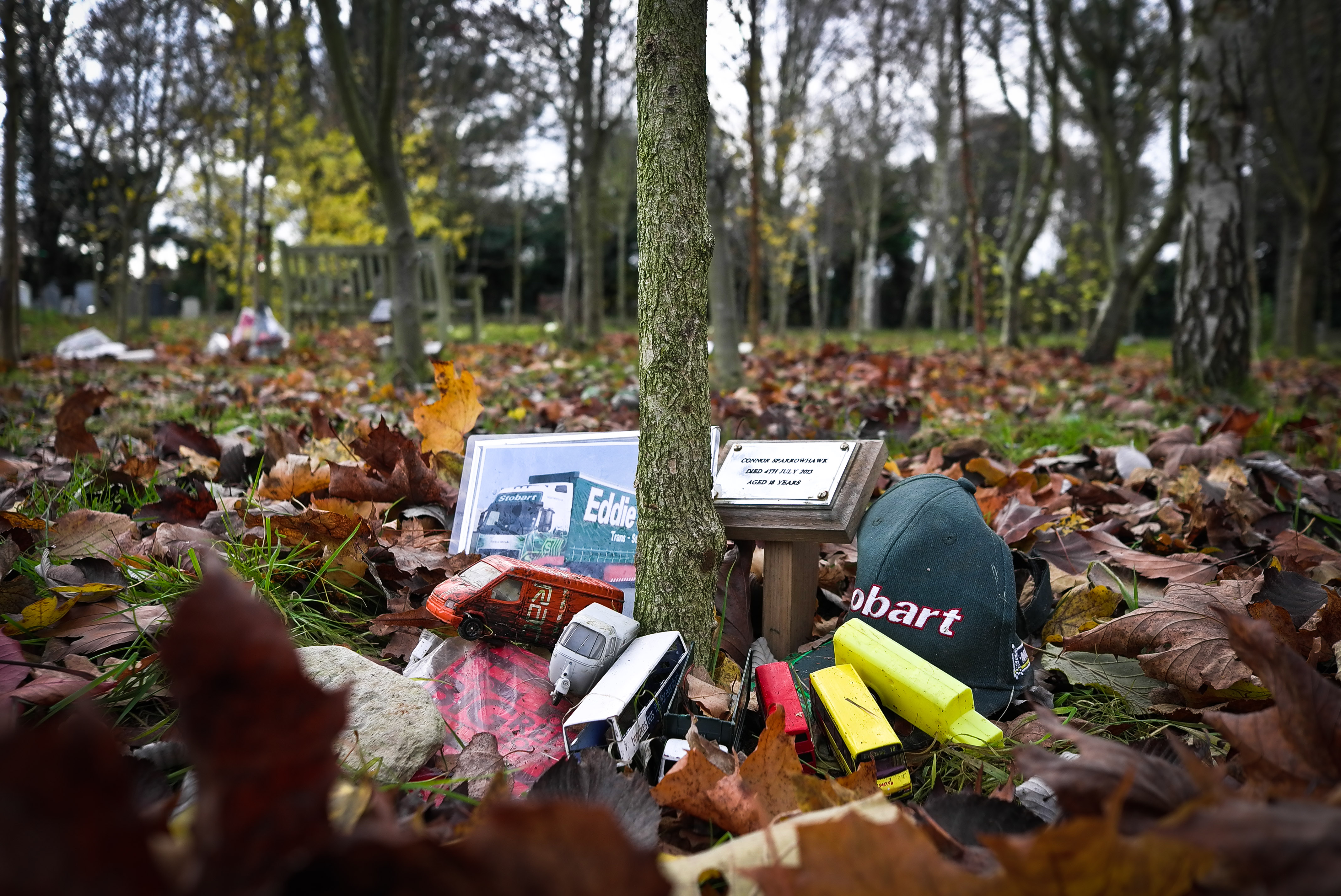 The big news in cemetery world (I suspect it’s a fairly low key news space generally) is LB has a tree. The cemetery staff planted it so carefully we wondered if it had been there all along. We’d just not noticed it. They also carefully replaced his collection of lorries,buses and Eddie Stobart memorabilia around it. You’re not really supposed to have stuff in this section of the cemetery but I think the cemetery staff pretend not to notice. He was only 18.