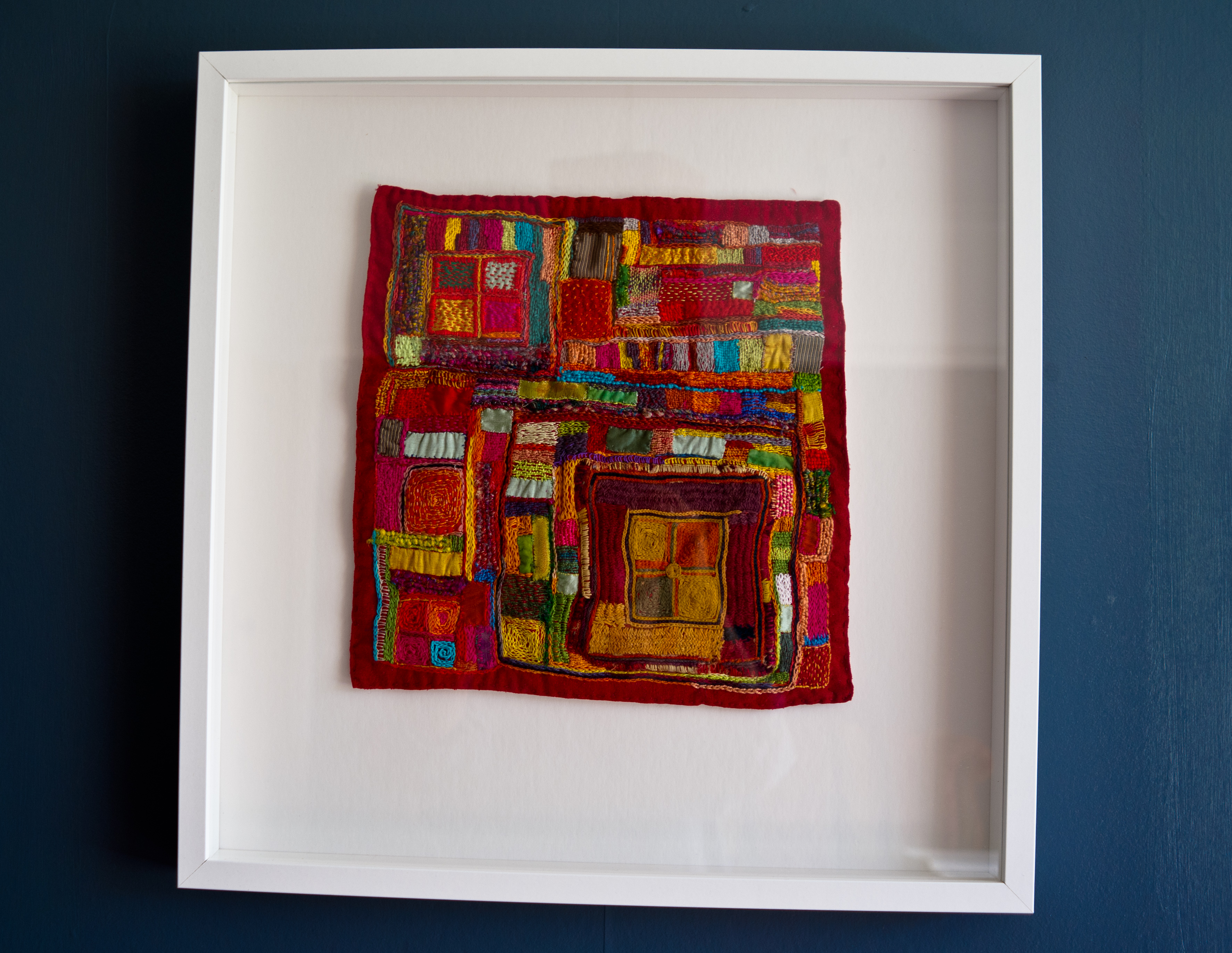 Finally, Landscape for a Sparrowhawk, by the remarkable Janet Read (started on the train on the way to LB’s funeral that hot summer’s day last July) is now above the fireplace in our front room.