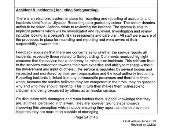 In Ofsted school inspections, teams were (covertly) steered at one stage to avoid failing institutions, because it involved much more time & thus reduced profits for the consultancy businesses commissioned to carry out inspections. This report has the same ring to it.You basically spell out that is crap, but let them off the hook by saying they are implementing improvements. 😦 😦 😦 😦