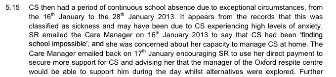 (I don’t think OCC can seriously expect me to keep this confidential in the circumstances). The report is so biased it’s almost comedic. Definitive statements about my ‘failings’ (without evidence) throughout but light touch on OCC on any dodgy ground. Here’s just one example around the issue of respite.