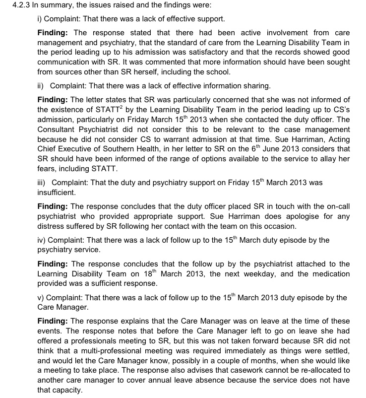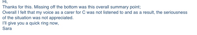 Tonight the tears started on p5. A summary of the complaint I made to Sloven after LB was admitted to the unit in March 2013. A summary of five of the points that the complaint made and the shonky responses to it.
