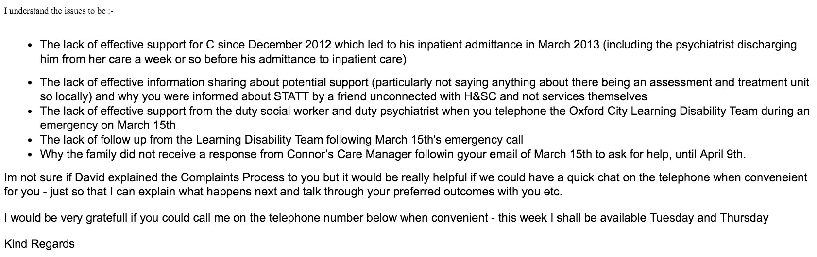 Prophetic words and dripping irony. I wasn’t listened to. The seriousness of the situation was not appreciated. I wasn’t listened to in making the complaint either. Clearly. And OCC deliberately didn’t listen in writing this craphole ‘report’ based on half truths and inaccuracies.