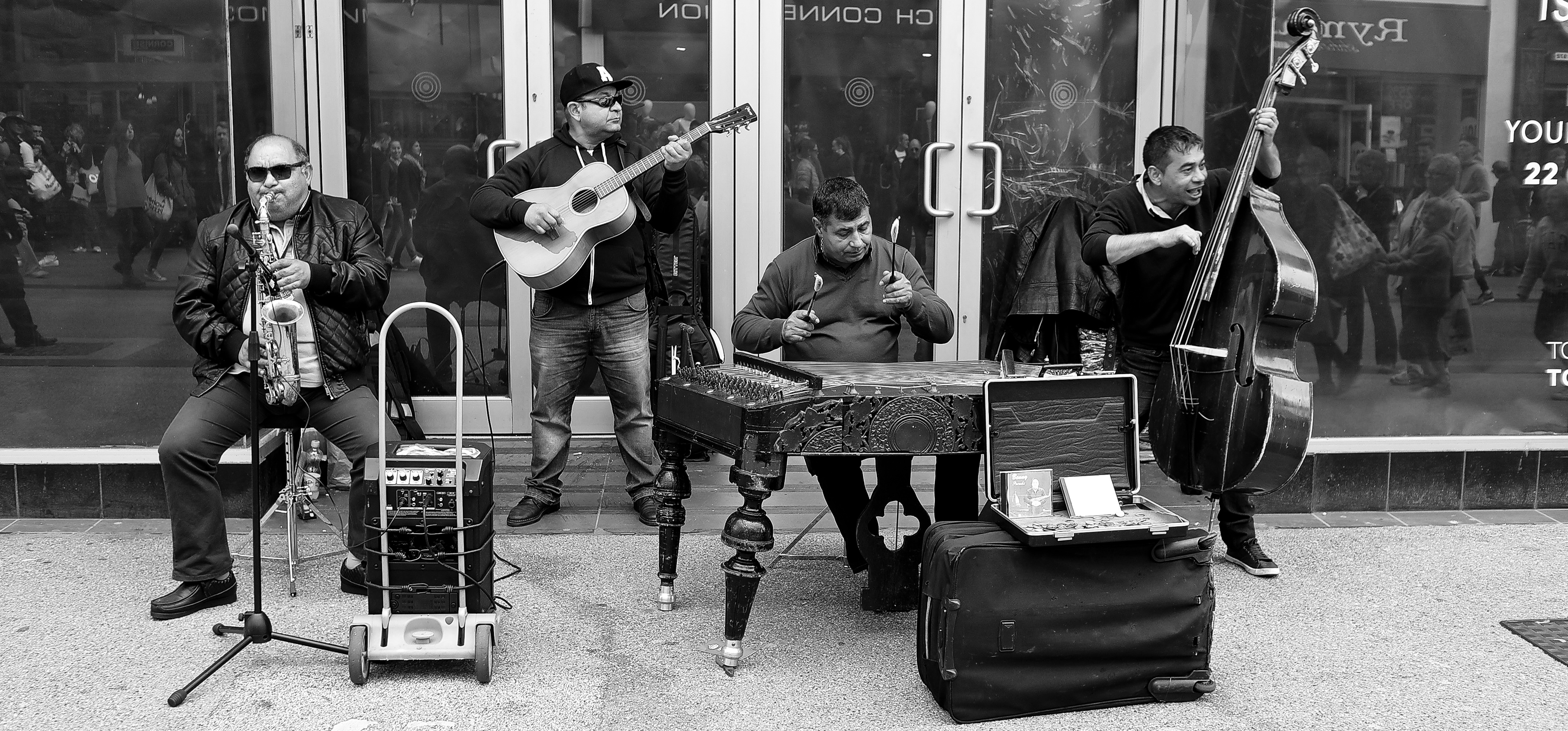 With a ladleful of irony, I won’t be tweeting or blogging as openly or transparently for the next two weeks. Here’s a photo of an extraordinary band who blasted some joy into the everyday lives of people passing by in Oxford city centre yesterday. A bit of light in our fucking foul lives right now.