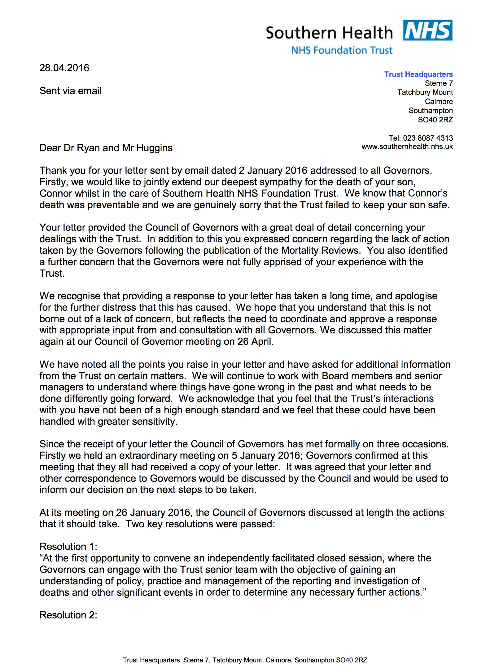 The governors response…
