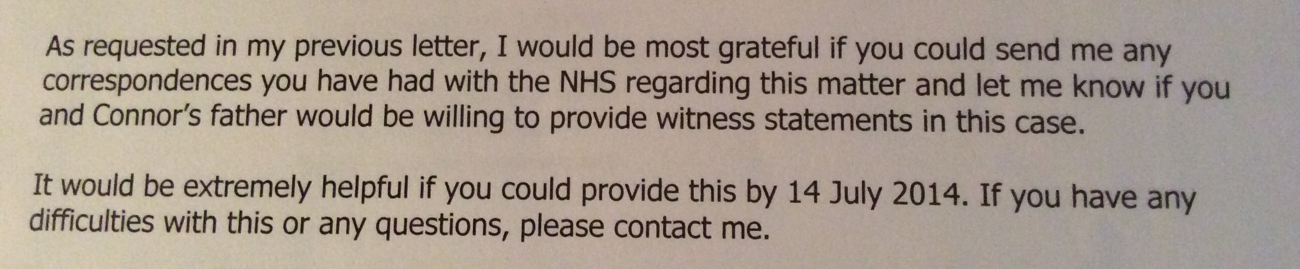 I did so. Because we bereaved families do. There was a second request for information, again with a short deadline.