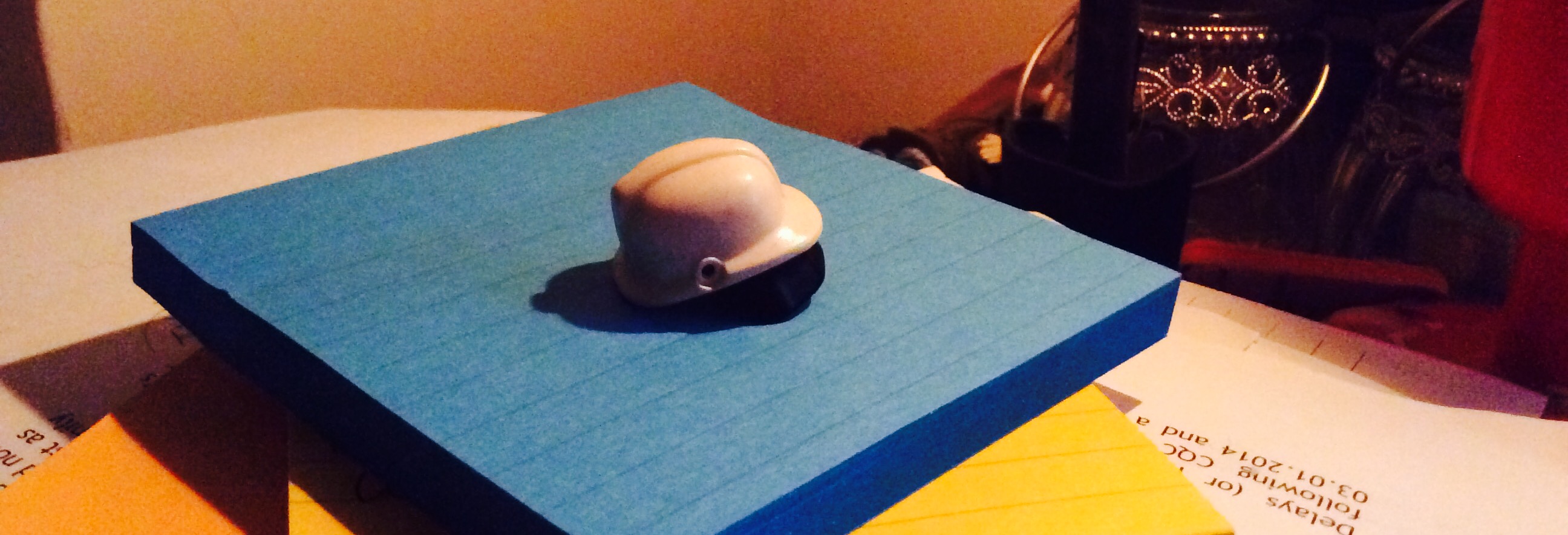 I found a Playmobile hard hat yesterday clearing out the rubbish under my desk. Reminding me of the Playmobile years (a good 16 of ’em) and LB’s fascination with emergency services.