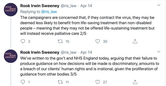 Oof. Way to go Oliver. Spoken only from the comfort, superiority and safety of not being on the Does Not Count list. A group of disability rights campaigners have launched a legal challenge around the failure of the government and NHS England to publish guidance on how NHS treatment for COVID-19 will be prioritised if demand outstrips supply. We want a bit more than medics ‘choosing carefully’.