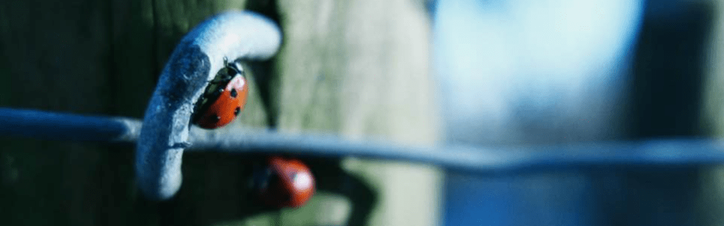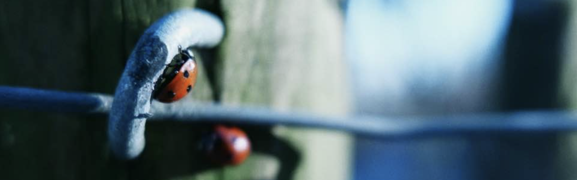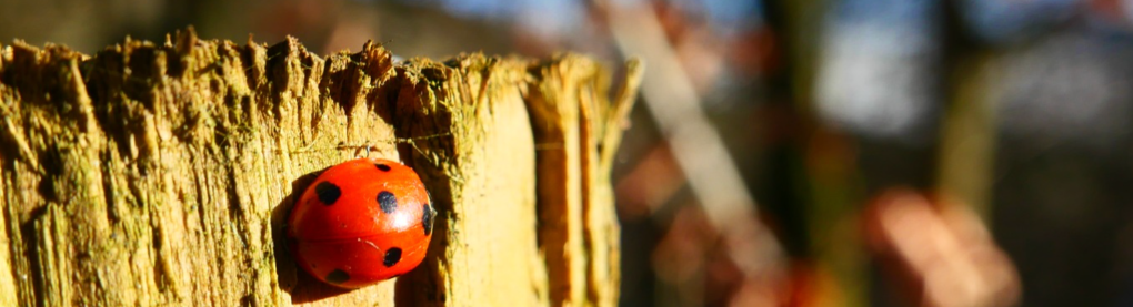 Wooden posts with ladybirds. In the middle of winter.