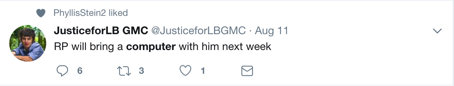 Supported us? In the wake of LB’s sudden, brutal, unexpected and utterly preventable death? Like a police liaison officer? Ah. No. LB died in the NHS. There’s none of that stuff. Respond offered us telephone counselling via social media.