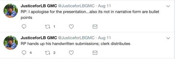 Late morning tomorrow (Friday) the panel are due to announce their determination on the facts (whether the doctor is guilty of the remaining charges she has not admitted to). The tribunal will then be rescheduled to continue at some point in the future.
