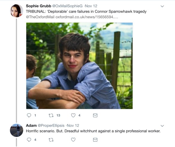 The overlap with Connor’s inquest is harrowing. Blame shifting, lies and an absence of remorse. Richard’s mother brutally and unnecessarily questioned at length.