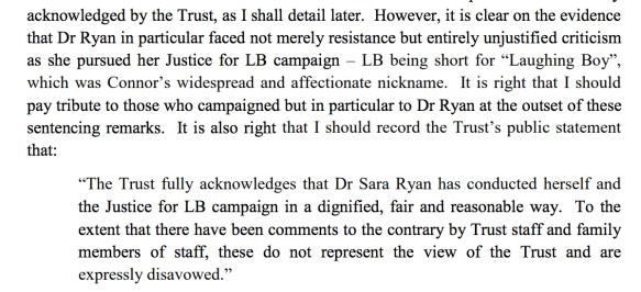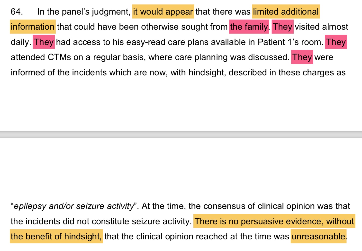Attempts to crush are woven into the fabric of accountability processes as well as the everyday actions of senior health and social care figures. No funding for legal representation at inquests without punitive and intrusive scrutiny. Interview transcripts with NHS staff with sub-sections titled ‘My Relationship with Dr Ryan’. The secret review by Oxfordshire County Council in which the author spoke to everyone but us spinning a teeth achingly biased yarn. The commissioner’s letter about the terrible harm ‘my’ campaign was causing. Countless crushing examples.