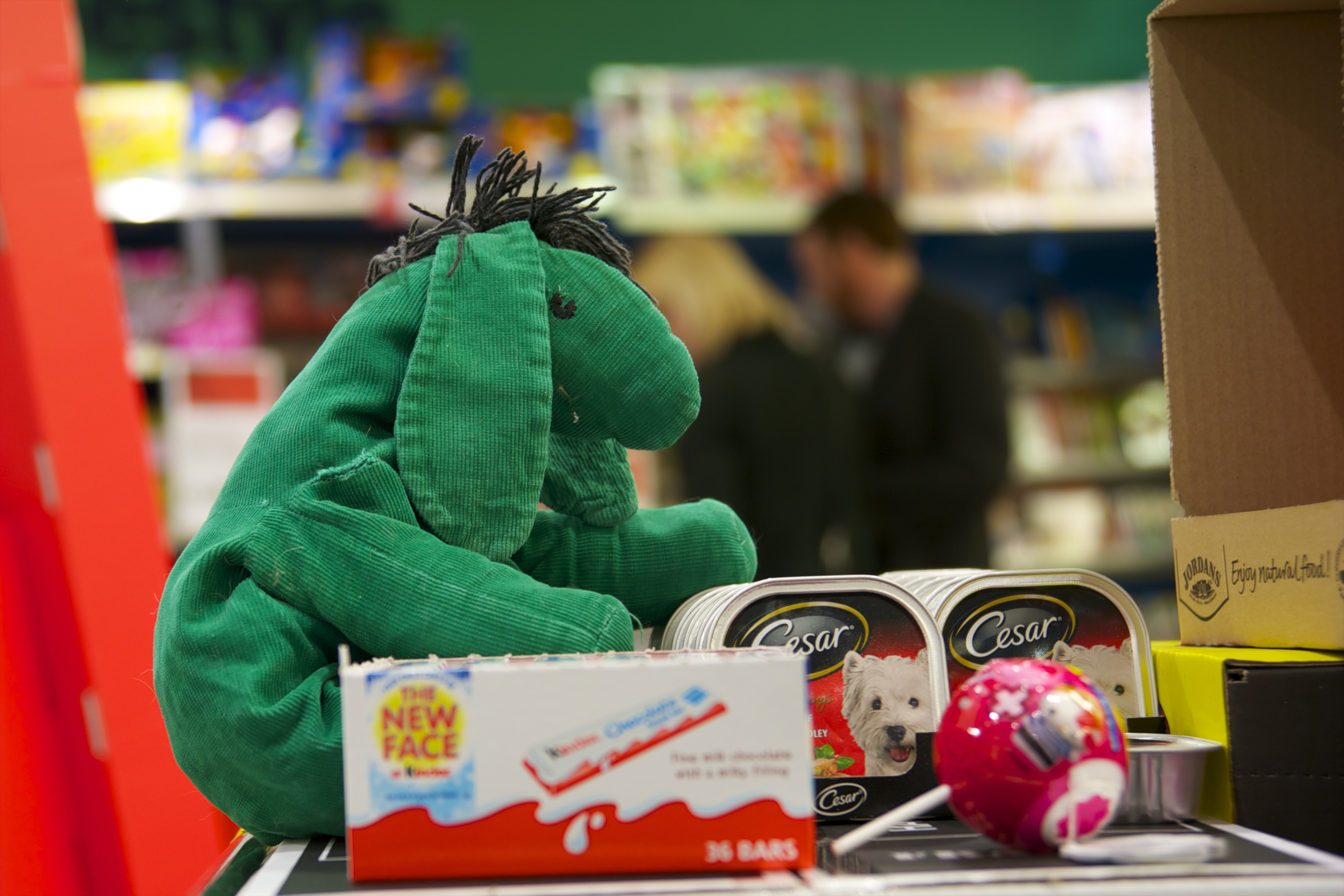 Green Dragon took a break from modelling and got a job shelf stacking at the Co-op. He still hoped for a big break, even though he began to look a bit shabby.