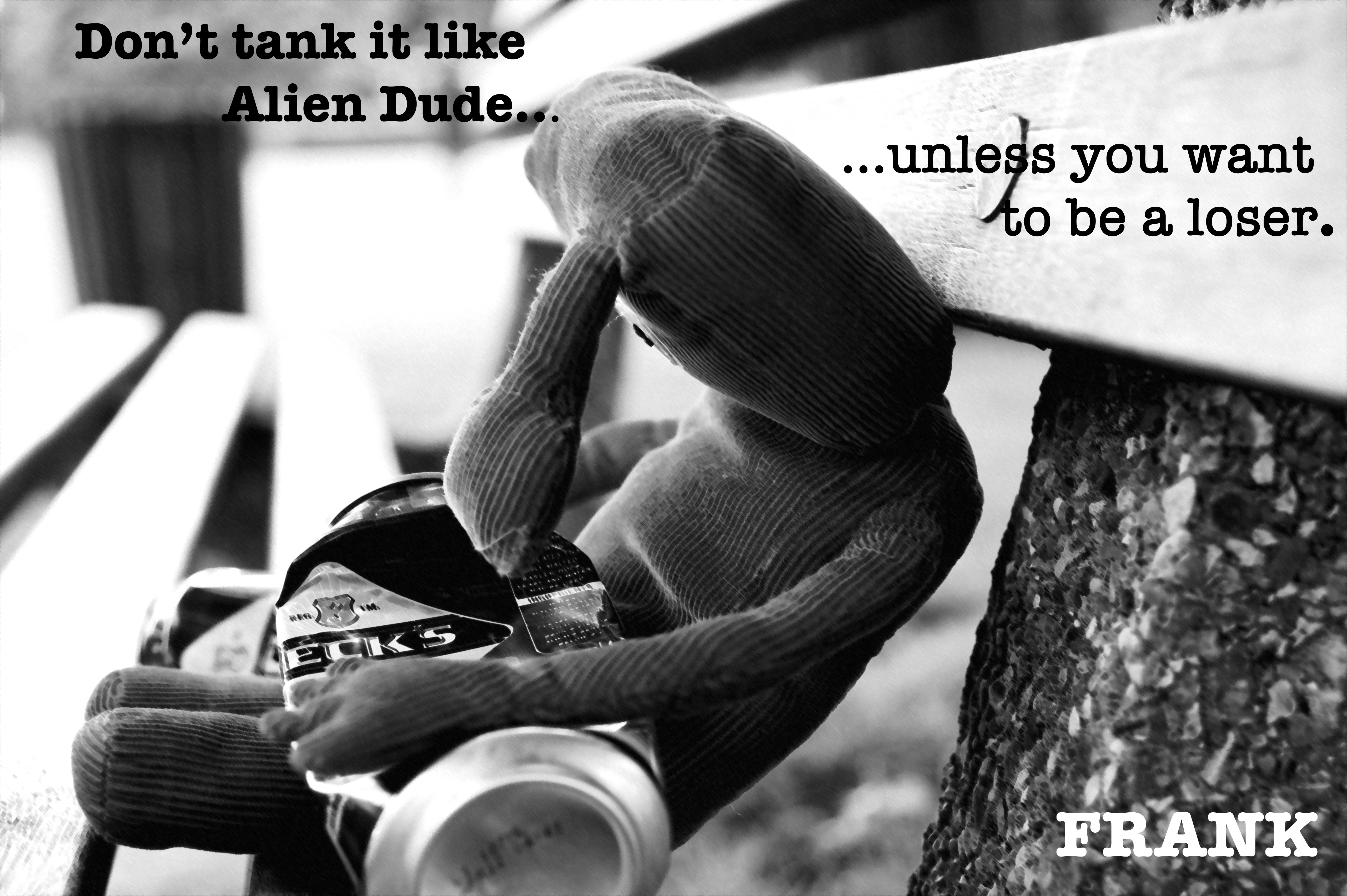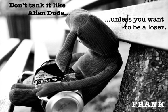 Alien Dude. Well, to be honest, life hasn't been too good to him since the photoshoot. He's often seen semi-conscious in the park across the road from the Co-op.