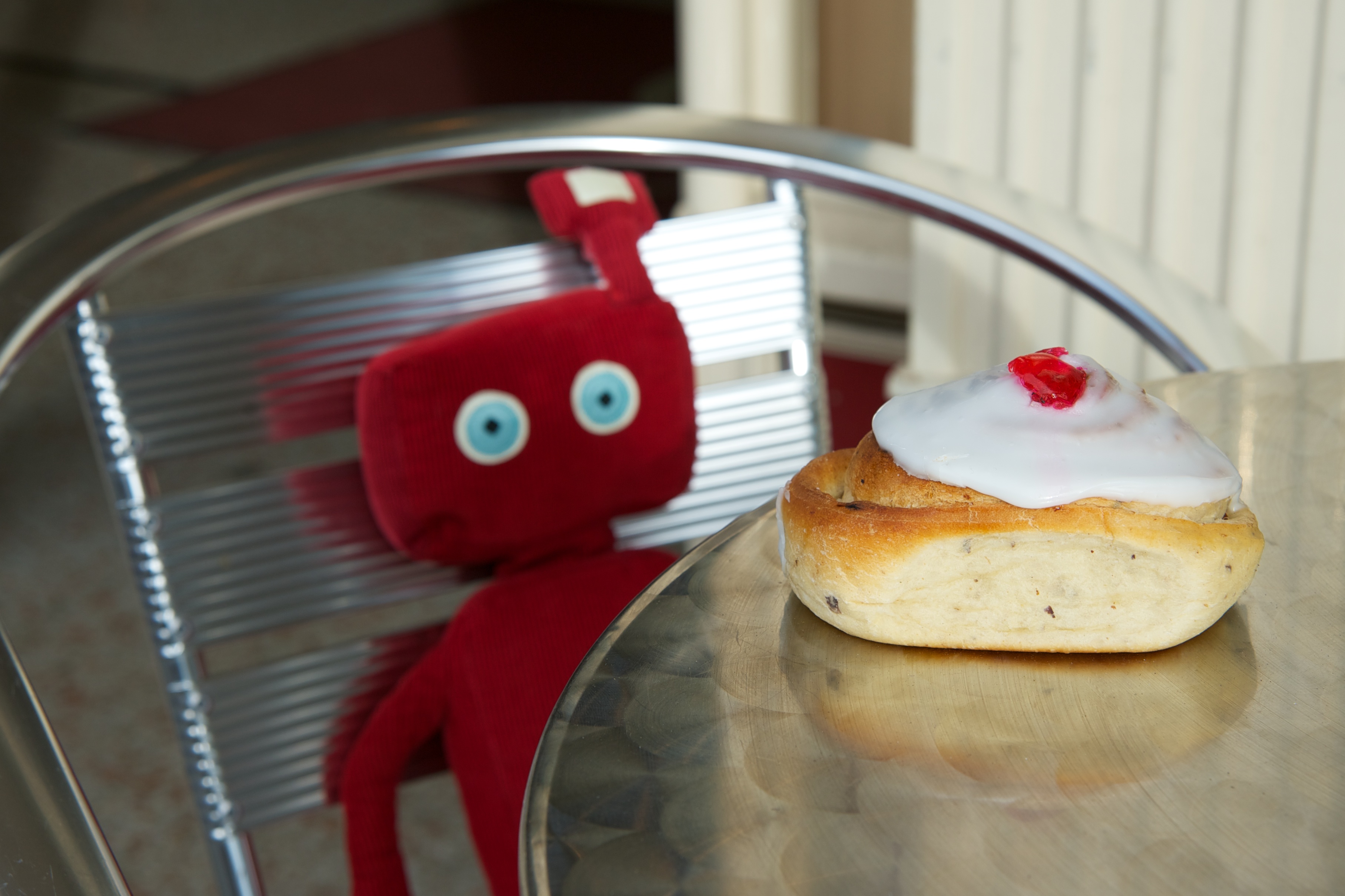 Sackboy caught a lucky break. He was spotted by a talent scout in the Cafe Bonjour and got himself a gig on LittleBigPlanet. Thumbs up Sackboy!!!!