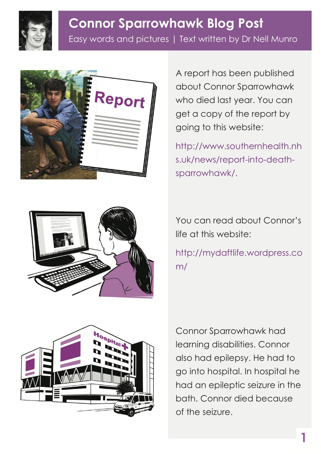 Connor Sparrowhawk easy read version “The official report into Connor’s death is difficult to read and full of jargon.” People First England